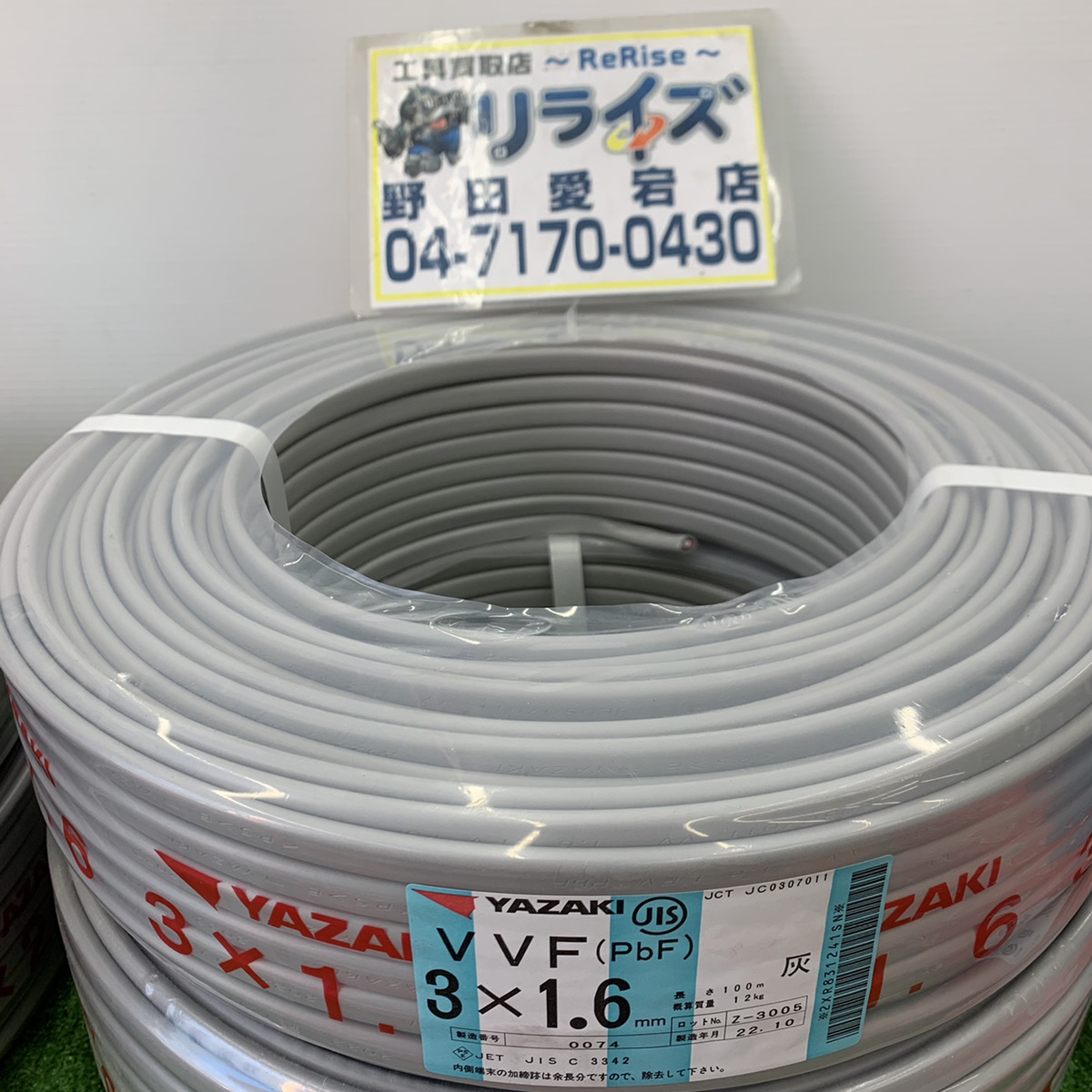 矢崎電線 VVFケーブル 3×1.6 野田愛宕店 2022.11.11 名称:VVFケーブル 3×1.6メーカー:矢崎エナジーシステム株式会社状態:未使用品買取金額:¥6,000 POINT いつもお買取りさせて頂ける常連のお客様からお買取りさせて頂きました!