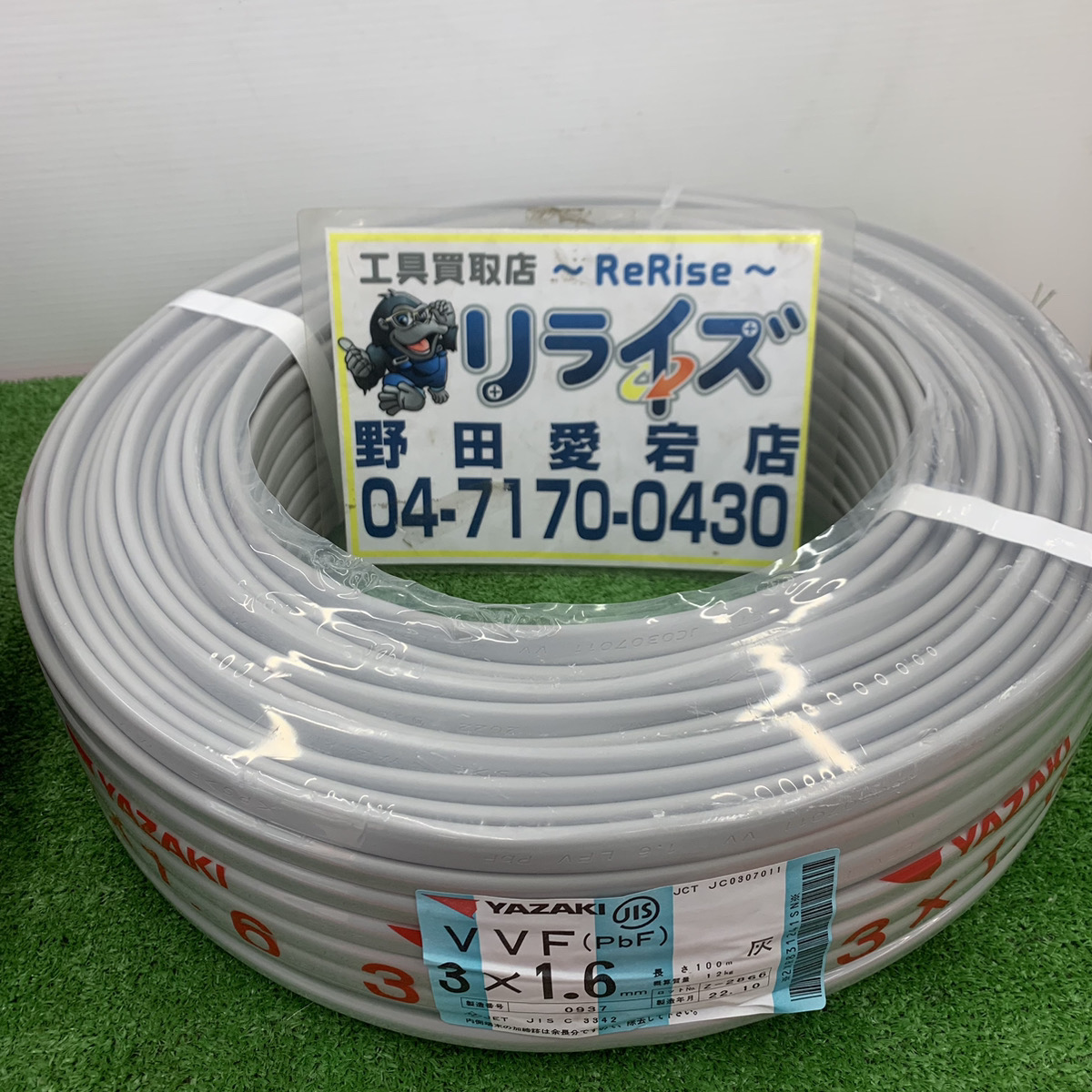 矢崎電線 VVFケーブル 3×1.6 野田愛宕店 2022.12.04 名称:VVFケーブル 3×1.6メーカー:矢崎エナジーシステム株式会社状態:未使用品買取金額:¥6,000 POINT いつもお買取りさせて頂ける常連のお客様からお買取りさせて頂きました!