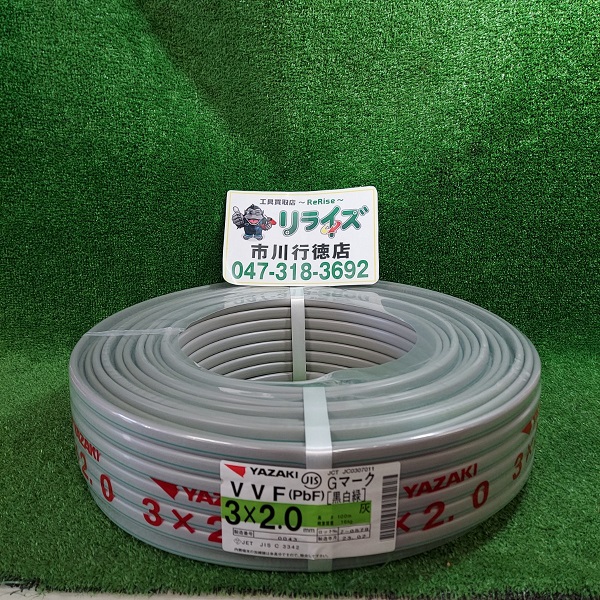 矢崎電線 VVFケーブル2.0mmx3芯 Gマーク(黒白緑) VVF3x2.0
