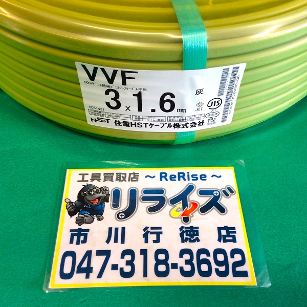 住電HSTケーブル VVFケーブル1.6mm × 3芯 VVF163 市川行徳店 2022.09.17 名称:VVFケーブル1.6mm × 3芯 メーカー:住電HSTケーブル株式会社型番:VVF163状態:未使用品買取金額:¥6,500 POINT 住電HSTケーブルのVVFケーブルをお買取させて頂きました!