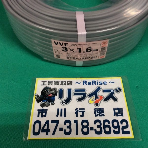 富士電線 VVFケーブル1.6mmx3芯 VVF3x1.6 市川行徳店 2022.12.08 名称:VVFケーブル1.6mmx3芯メーカー:富士電線工業株式会社型番:VVF3x1.6状態:未使用品買取金額:\6,000 POINT 富士電線工業のVVFケーブルをお買取りさせて頂きました!
