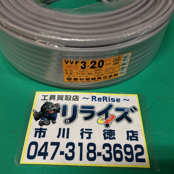 愛知電線 VVFケーブル2.0mm × 3芯 VVF203 市川行徳店 2023.01.04 名称:VVFケーブル2.0mm × 3芯メーカー:愛知電線株式会社型番:VVF203状態:未使用品製造年月:2022年2月買取金額:¥10,000 POINT 1月4日(水)から年始イベント開始!詳しくは、コチラ愛知電線のVVFケーブルをお買取りさせて頂きました。