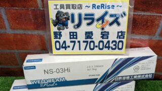 野田愛宕店 日鉄 溶接棒2個セット NS-03Hi 名称:溶接棒メーカー:日鉄溶接工業株式会社型番:NS-03Hi状態:未使用品買取金額:\1,500POINT常連のお客様からお買取りさせて頂きました!誠にありがとうございます!またのお持ち込みお待ちしております!! 2022.06.25 野田愛宕店