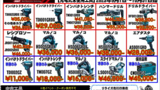 工具買取価格表ラインナップ更新いたしました!大人気商品も大量追加しておりますので、ご覧ください!