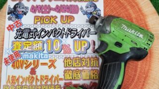 名称:インパクトドライバーメーカー:マキタ型番:TD161DRGX状態:中古品買取金額:¥8,000POINT只今開催中のイベント「中古インパクトドライバー10%アップ」でマキタのインパクトドライバーお買取りさせて頂きました!王道のマキタの...